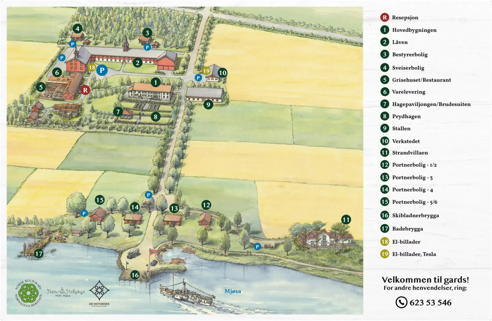 Husene for overnatting er spredt på ulike steder på eiendommen. Kjør direkte til deres tildelte hus/rom.